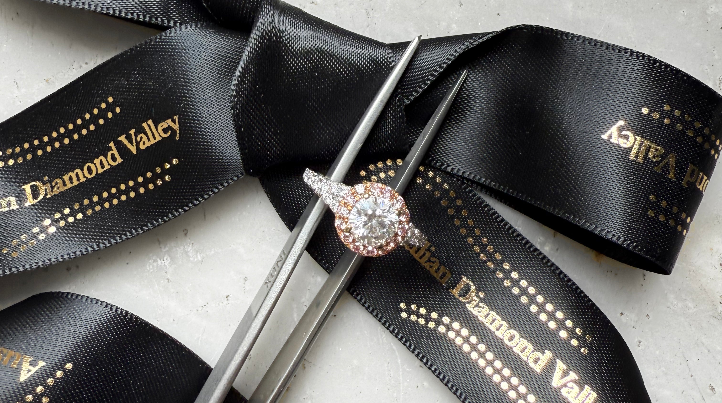 Beautiful Argyle origin pink diamonds with a warm peachy tone.