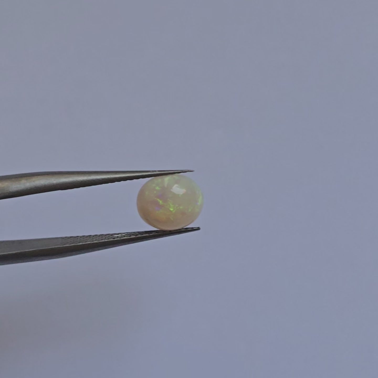 A serene 0.80ct single oval Australian Opal, coloured graded as milky Blue/Green/White with multicoloured flashes, presented in a premium leather patterned collectors box.