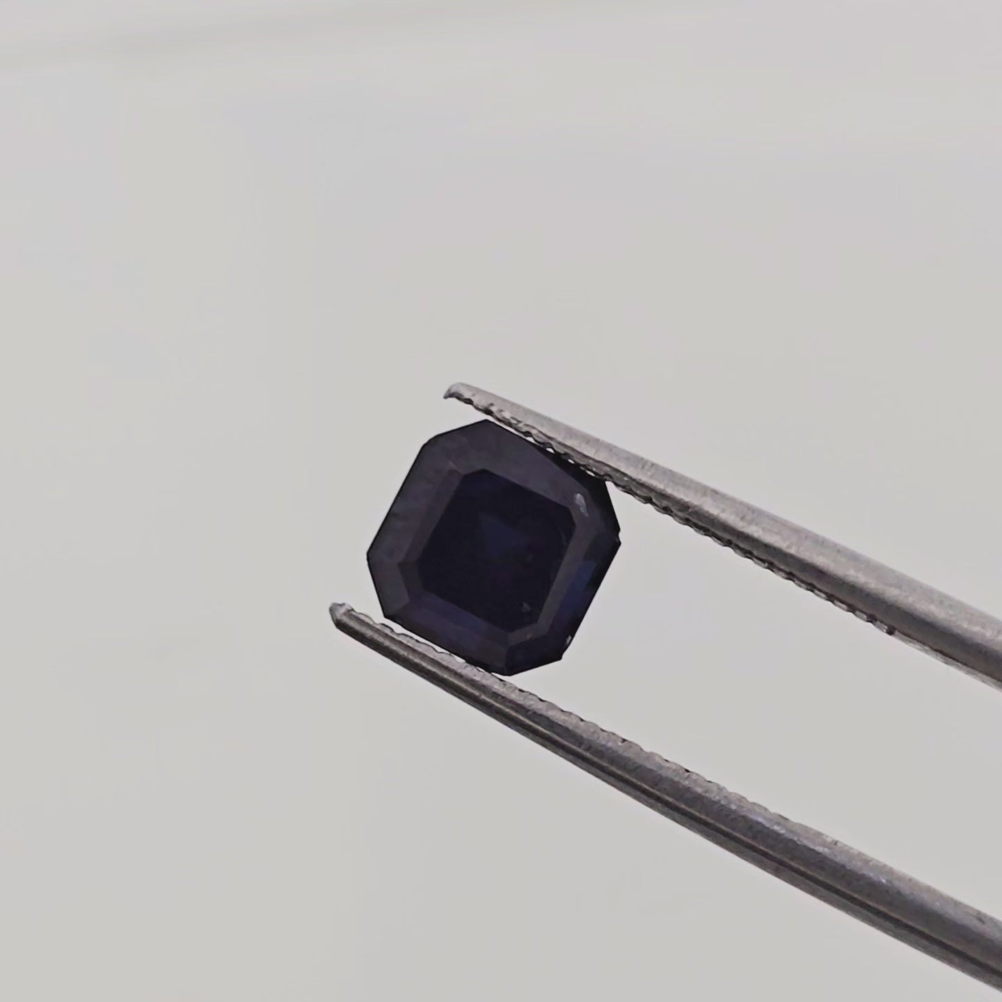 A stunning 1.54ct asscher cut Australian Sapphire, coloured graded as dark blue, presented in a premium leather patterned collectors box.