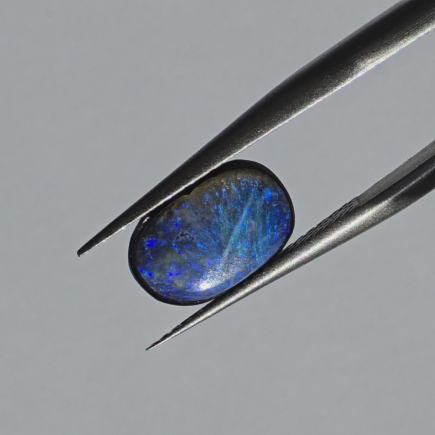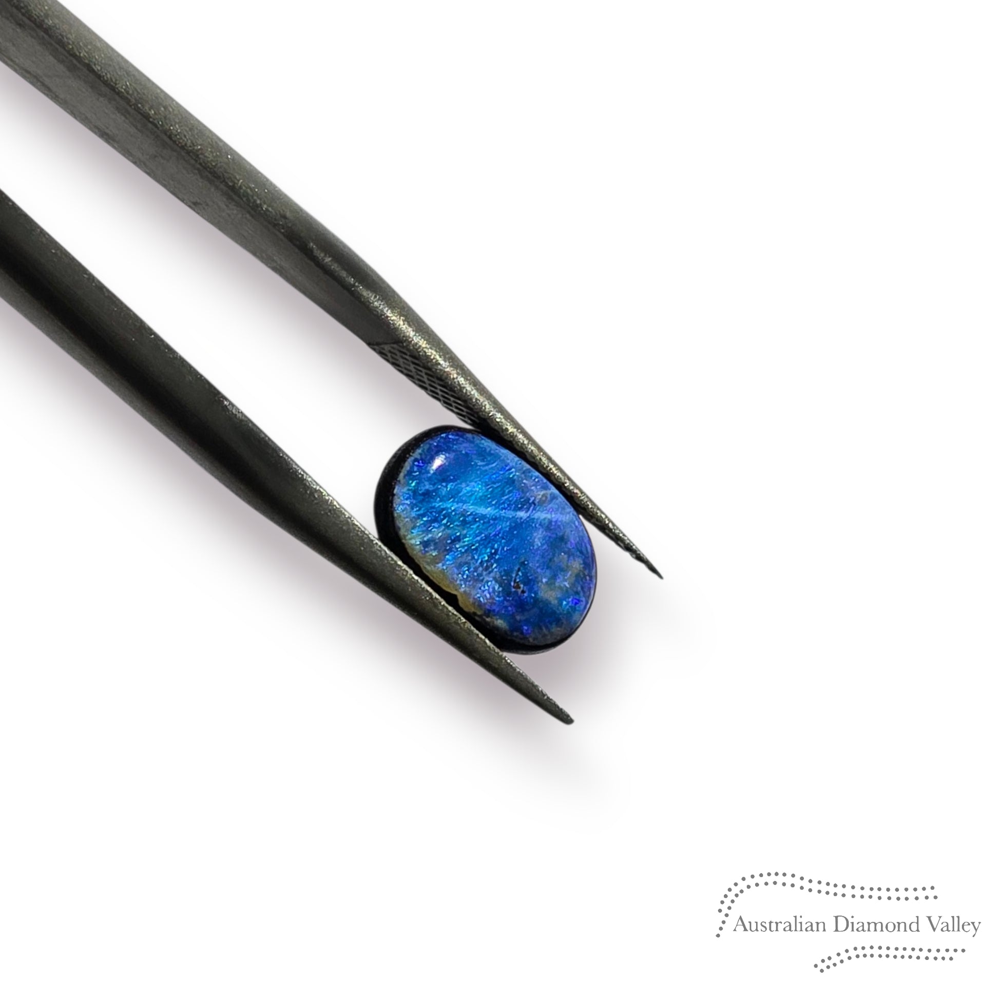An Oval cut Australian Opal equalling in 1.53ct, coloured graded as Blue with multicoloured flashes, presented in a premium leather patterned collectors box.