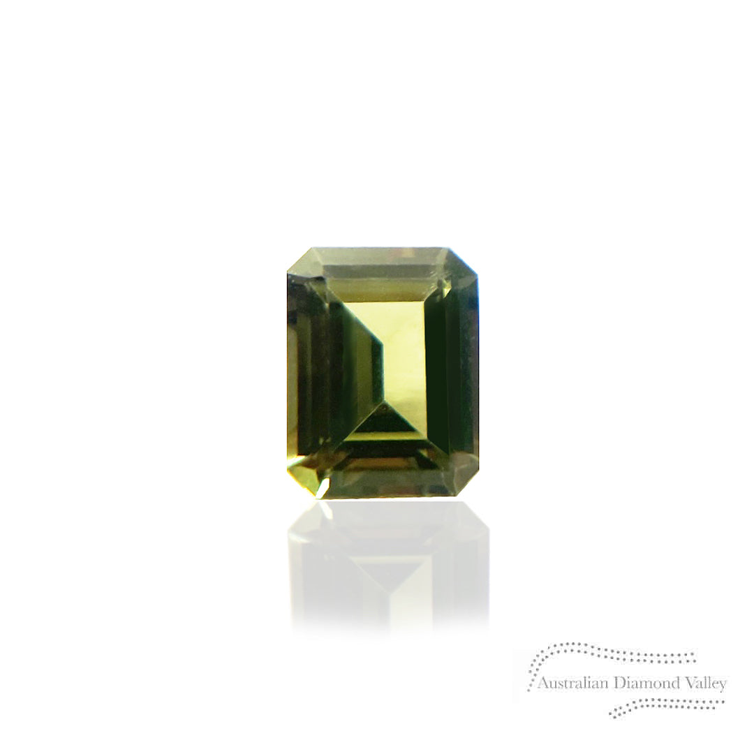 A stunning 1.19ct single Emerald cut Australian Sapphire, Colour graded as green, presented in a premium leather patterned collectors box.