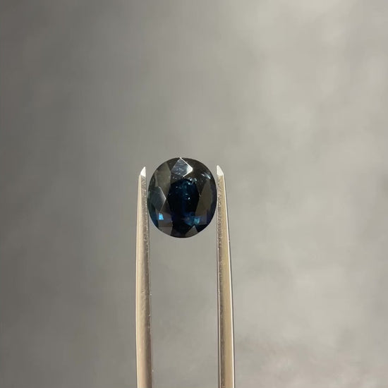 A beautiful 3.50ct single cushion cut blue Australian Sapphire, coloured graded as dark blue, presented in a premium leather patterned collectors box.