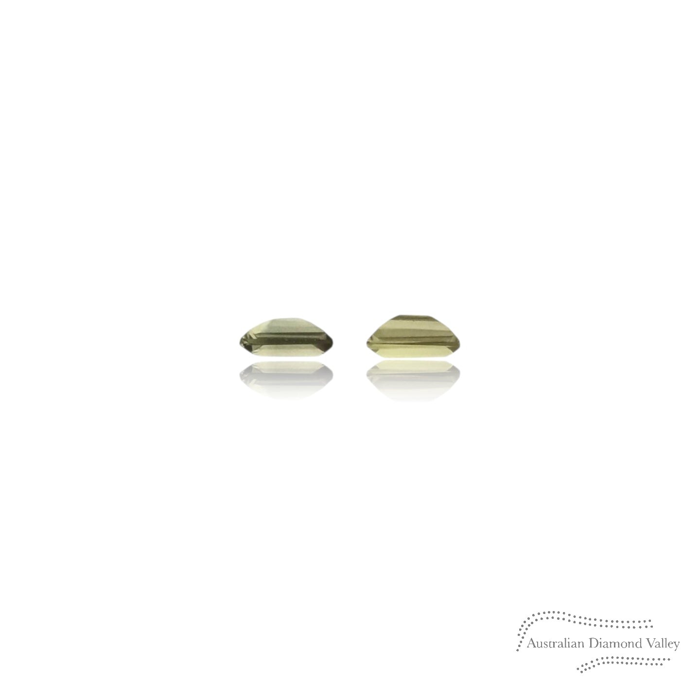 A stunning 0.37ct pair emerald cut Australian Sapphire, Colour graded as green presented in a premium leather patterned collectors box.