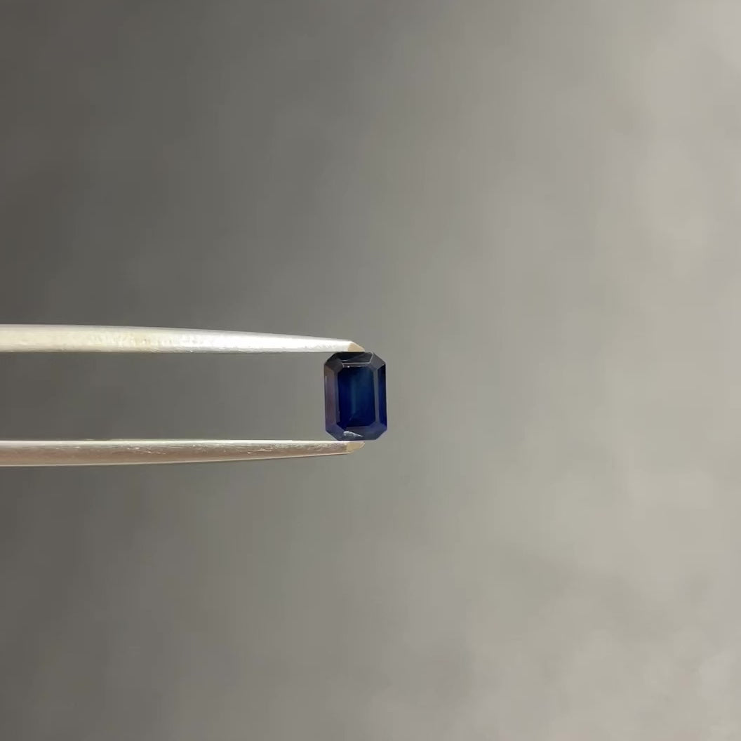 A stunning 0.66ct single emerald cut blue Australian Sapphire, coloured graded as dark blue, presented in a premium leather patterned collectors box.