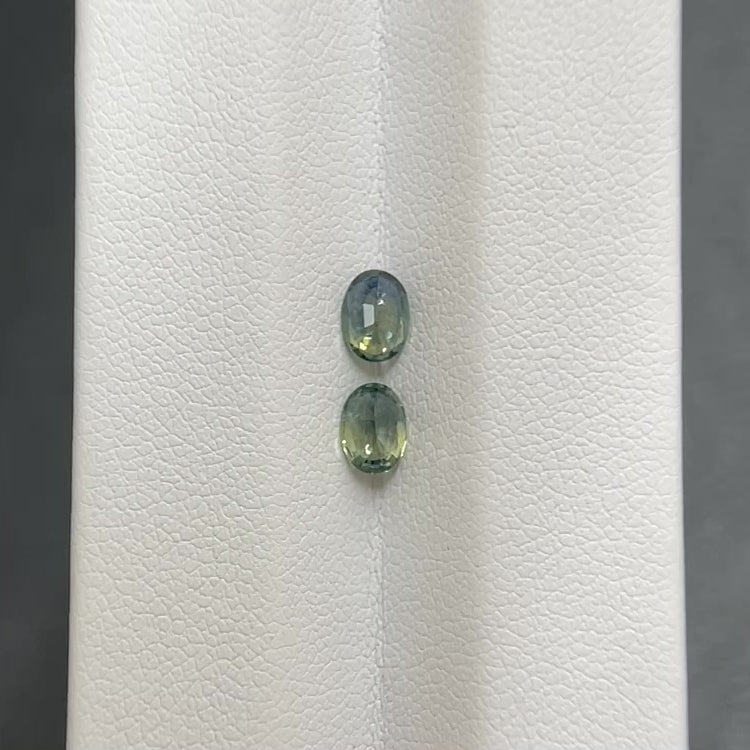 A 0.87ct pair oval cut yellow/blue parti Australian Sapphire, coloured graded as Yellow/Blue, presented in a premium leather patterned collectors box.