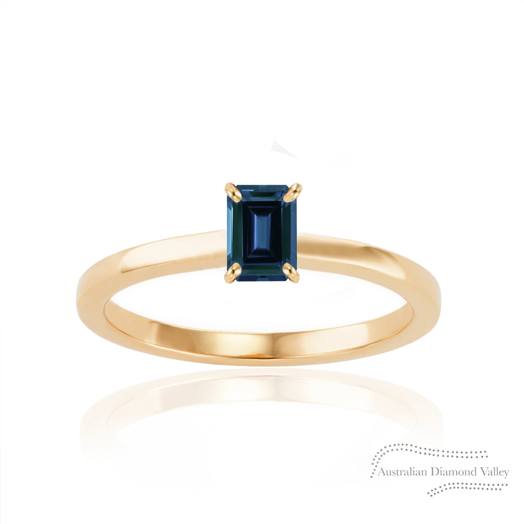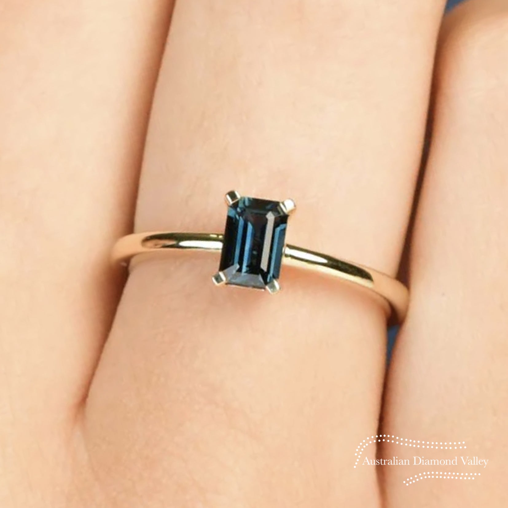 A classically beautiful design that can be layered with other rings. Crafted in 18K gold, set with an emerald cut 0.70ct Australian teal sapphire held in a four claw setting.