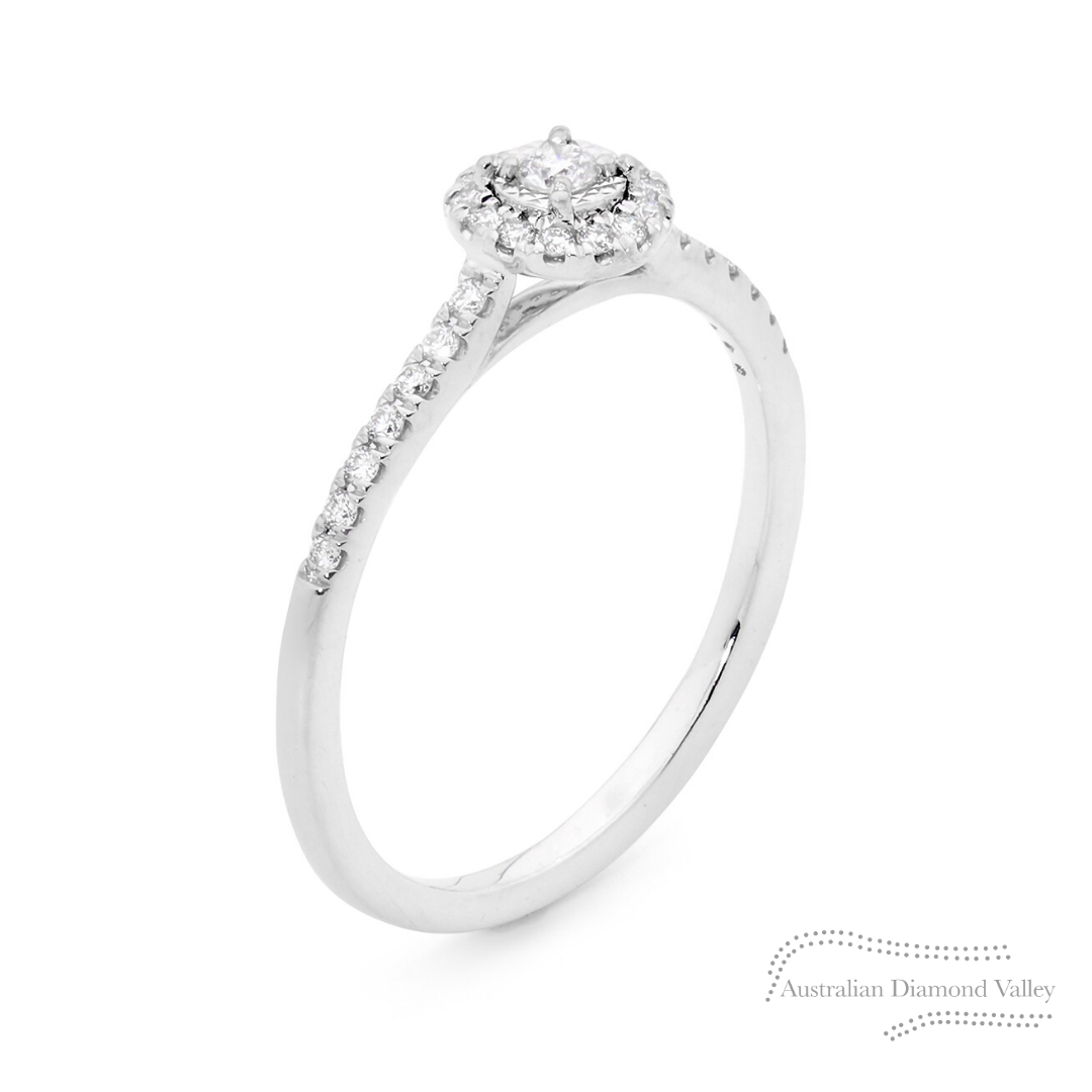Crafted in radiant 9K white gold, the Bay Ring features 29 round brilliant cut Argyle Australian diamonds, totaling 0.21 carats—a refined piece of timeless elegance.