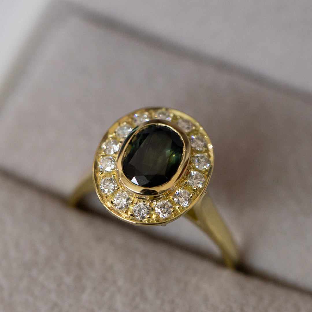 Forest Australian Yellow/Green Parti Sapphire 18K Yellow Gold Ring