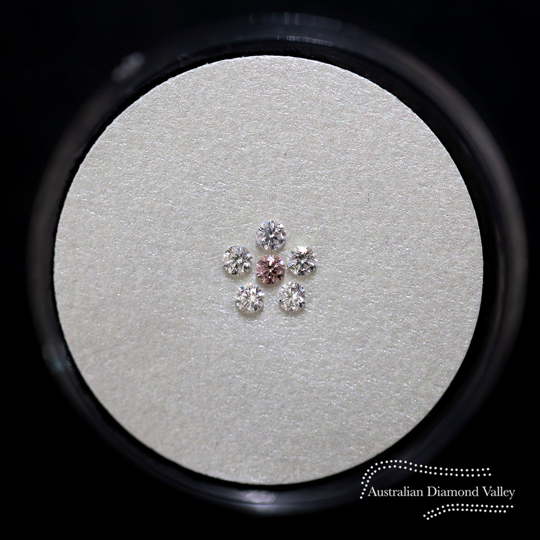 Our new edition of ADV Daisy is made of five 0.02 carat round brilliant cut Argyle origin white diamonds with a beautiful deep pink centre 5P 0.02ct Argyle origin diamond, graded 5 Pink (5P), presented in a premium leather patterned collectors box.