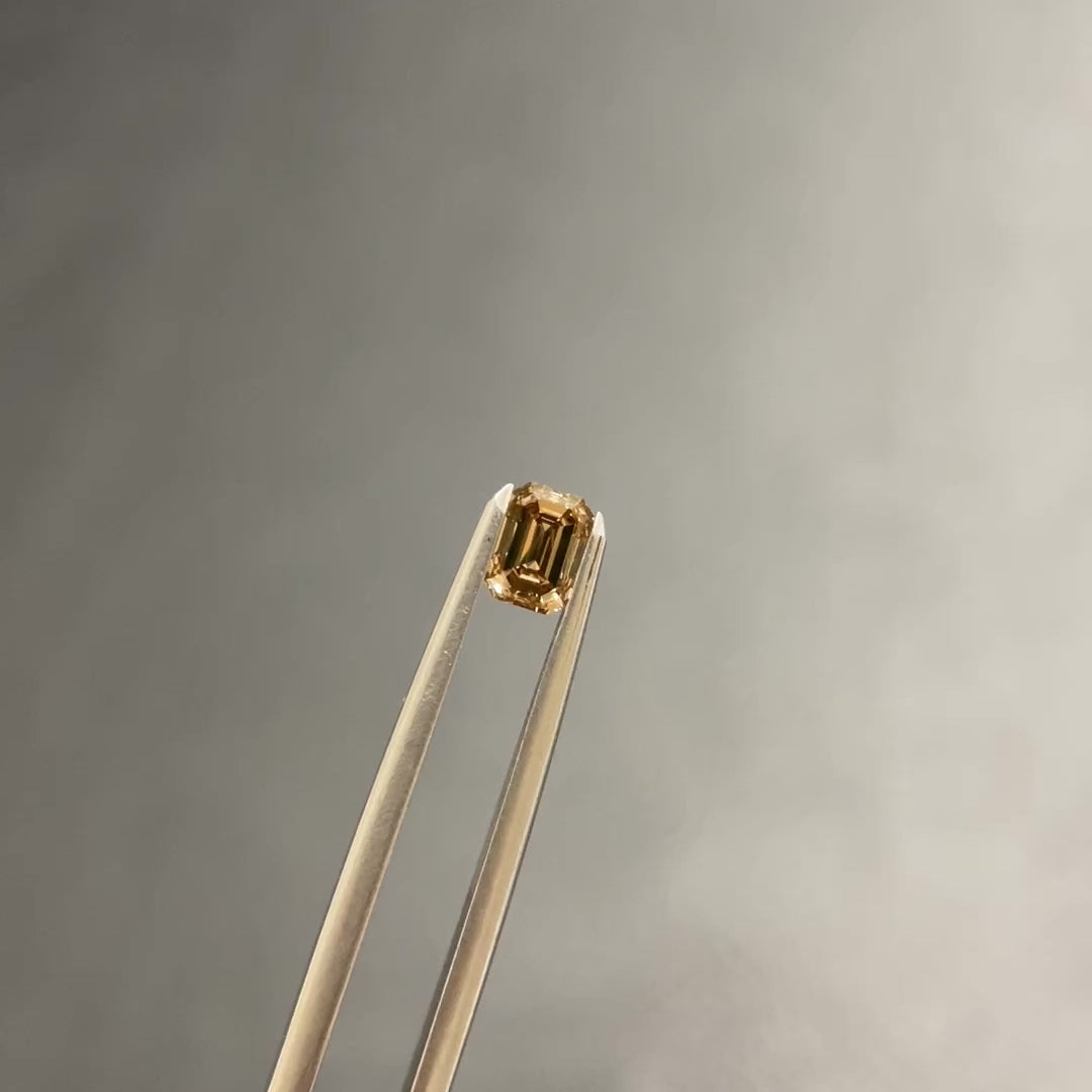 A single 0.50ct carat emerald cut champagne Argyle origin diamond, graded Champagne 6 (C6), presented in a premium leather patterned collectors box.