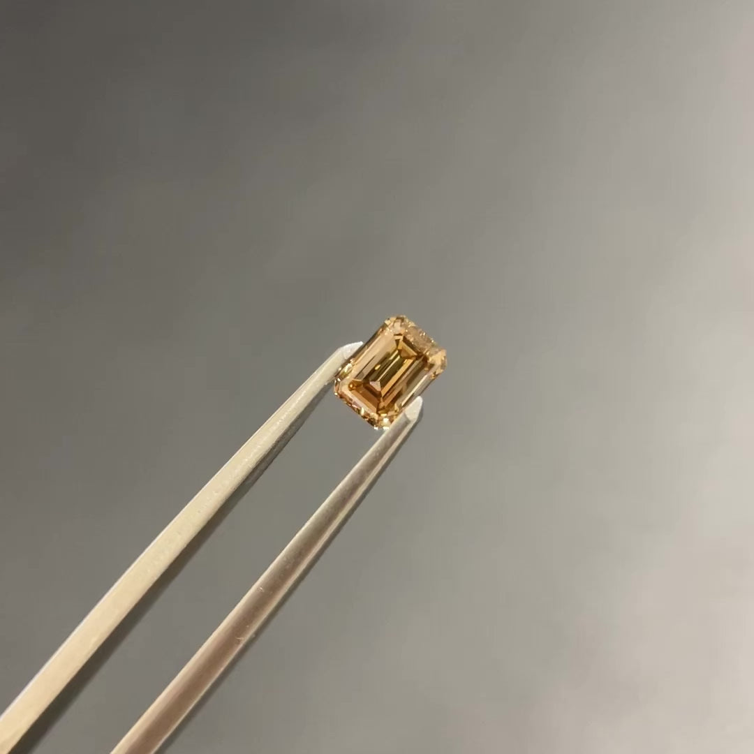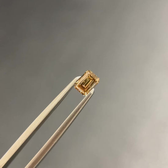 A single 0.57ct carat emerald cut champagne Argyle origin diamond, graded Champagne 5 (C5), presented in a premium leather patterned collectors box.