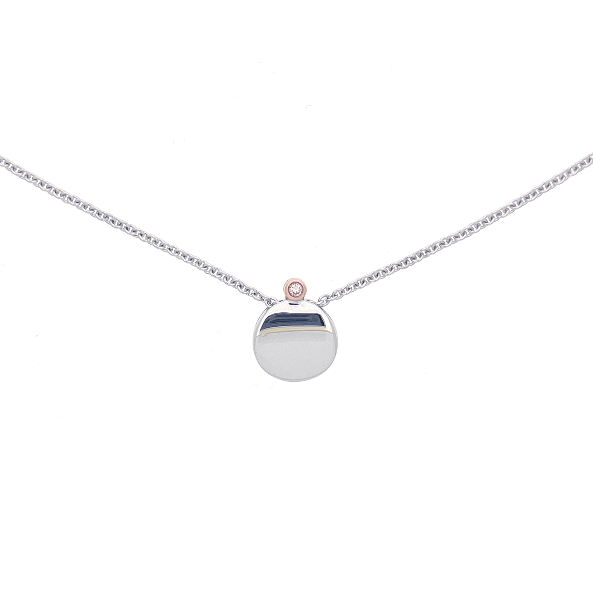 Our handcrafted Enchanted Necklace features a single pink Australian Argyle origin diamond set in 9ct Rose Gold, accompanied by a beautiful Sterling Silver circle.