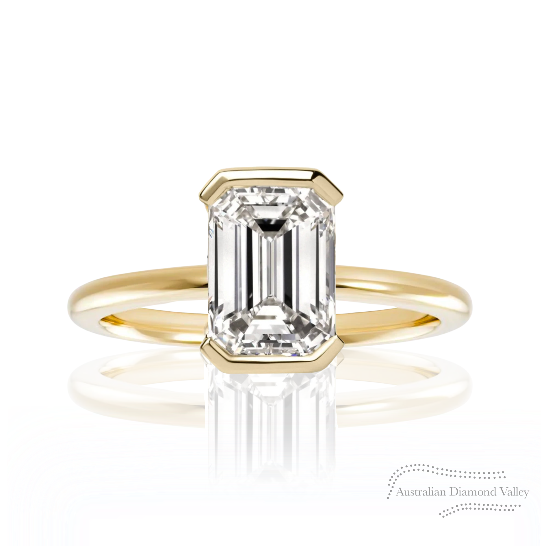 The Kingsbury Ring features a sophisticated open bezel-set emerald cut centre stone, crafted with precision by ADV’s master jewellers.