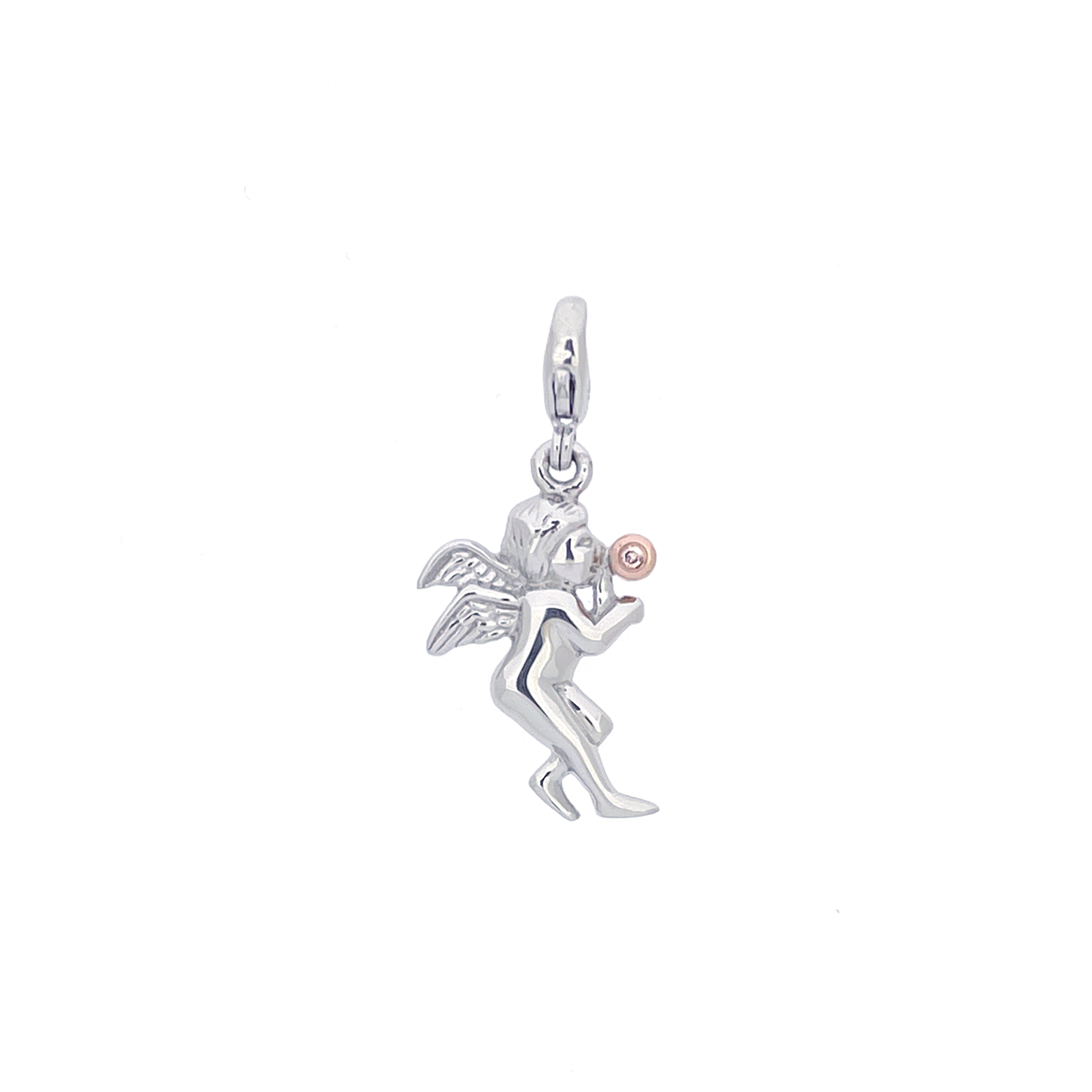 Our handcrafted Angel charms feature a single pink Australian Argyle origin diamond set in 9ct Rose Gold, holding in the hands of lovely angels in Sterling Silver.