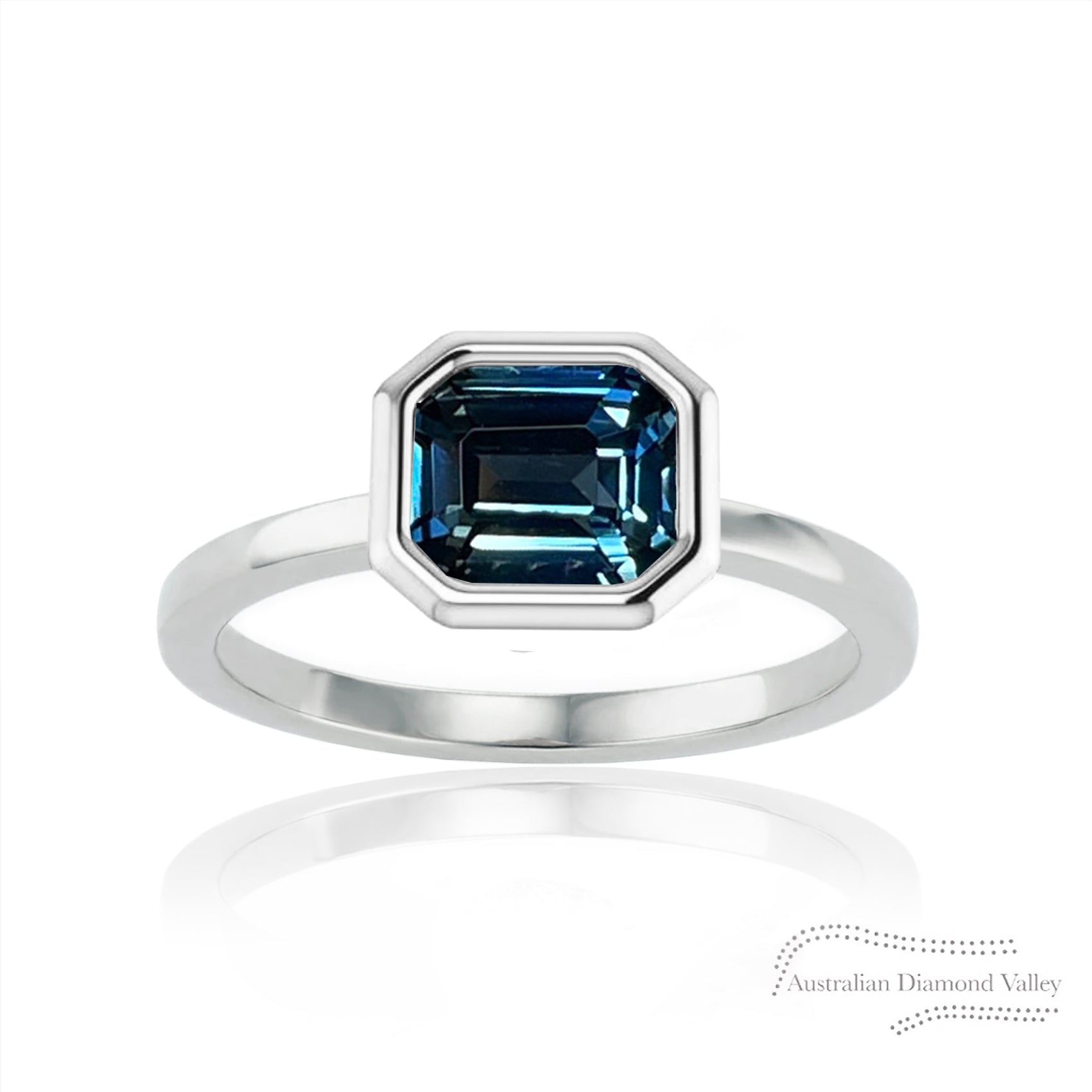 An elegant Australian sapphire ring, with a bezel set design, mounted on a classic polished 18kt gold ring band.